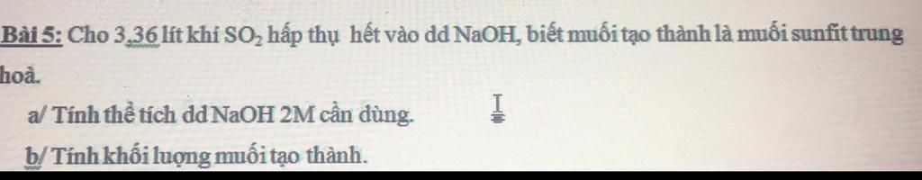 `(n_(SO_2))/(n_(NaOH)) = 1/2 => n_(NaOH) = 2 n_(SO_2) = 2 . 0,15 = 0,3 ( mol )`