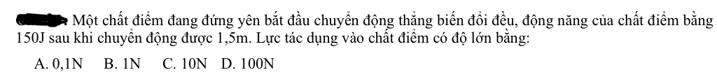 a = \frac{{{v^2} - v_0^2}}{{2s}} = \frac{{\frac{{300}}{m} - 0}}{{2.1,5}} = \frac{{100}}{m}\\