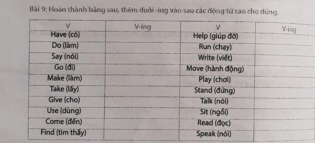 + Động từ 1 âm tiết, tận cùng bằng “Nguyên âm + Phụ âm” (Trừ h, w, x, y), ta gấp đôi phụ âm và thêm -ing
