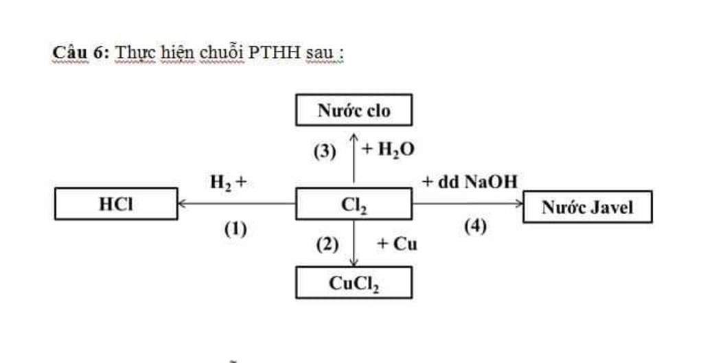 4/ Cl2 + 2NaOH --> NaClO + NaCl + H2O