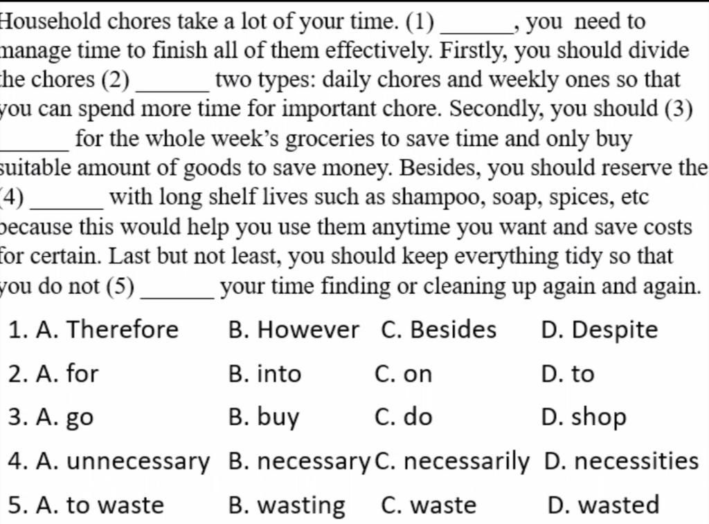 Câu4:D=>Sau the là Danh từ, thì có necessarities là Danh từ, các chữ kia là adj