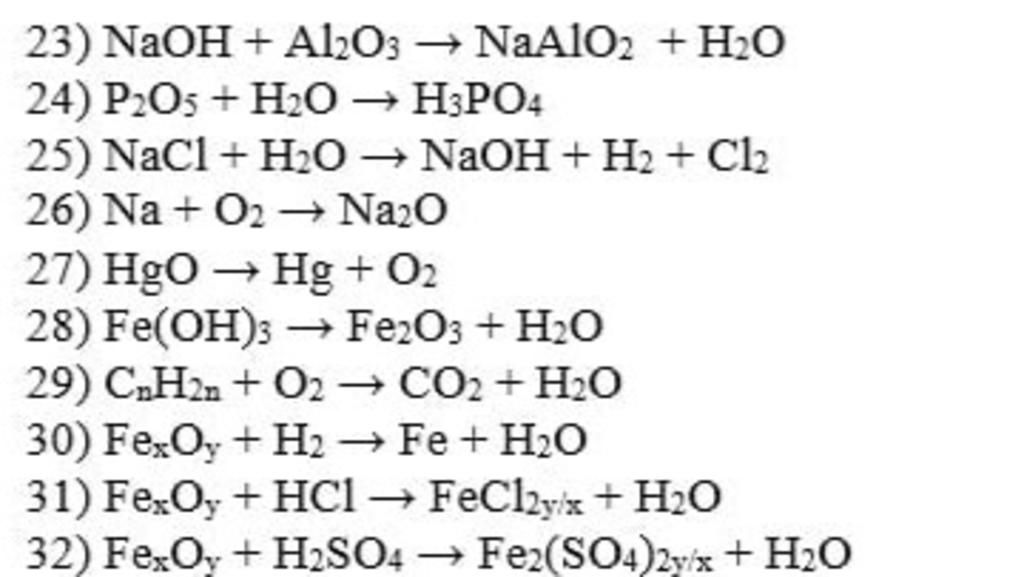 31) FexOy + 2yHCl → xFeCl2y/x + yH2O