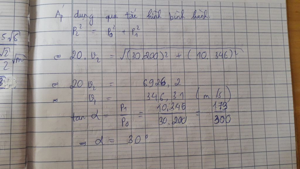 {p_2} = {m_2}{v_2} = \sqrt {{p^2} + p_1^2} \\