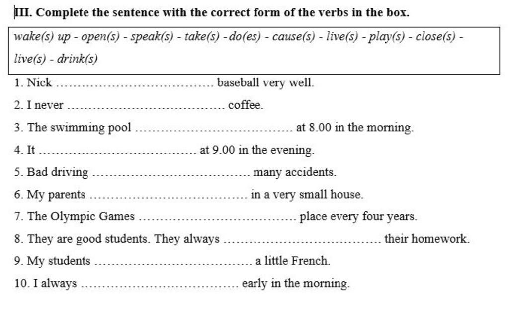 9/ Speak ( vì students là số nhiều nên không đổi)
