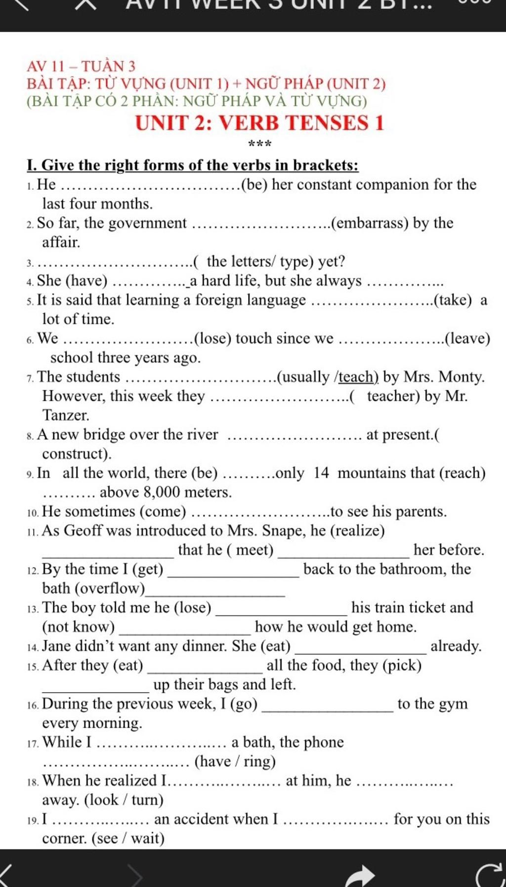(BÀI TẬP CÓ 2 PHÀN: NGỮ PHÁP VÀ TỪ VỰNG)