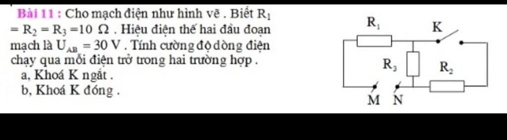 Khi khoá ngắt thì dòng điện không đi qua đoạn mạch có $R_2$ do đó mạch lúc này chỉ còn $R_1 nt R_3$