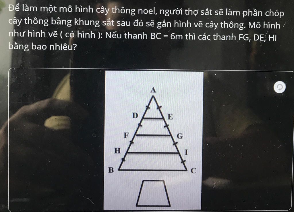 như hình vẽ ( có hình ): Nếu thanh BC = 6m thì các thanh FG, DE, HI