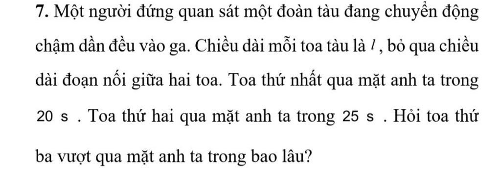 7. Một người đứng quan sát một đoàn tàu đang chuyển động