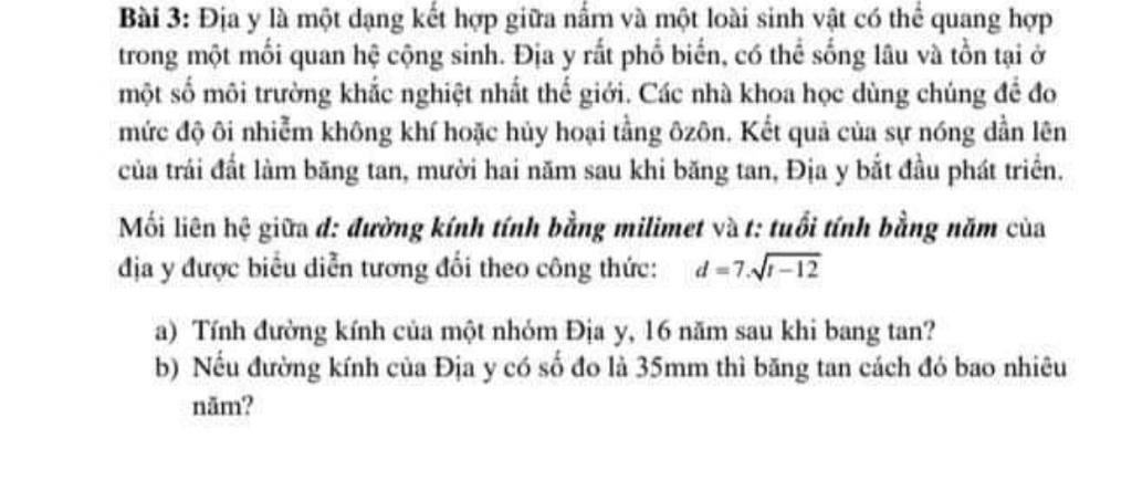 Bài 3: Địa y là một dạng kết hợp giữa nấm và một loài sinh vật có thể quang hợp
