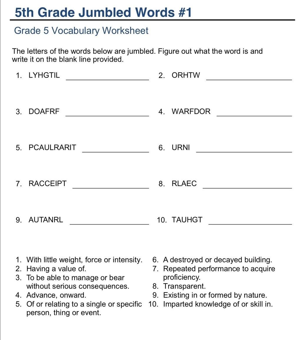 5th Grade Jumbled Words #1