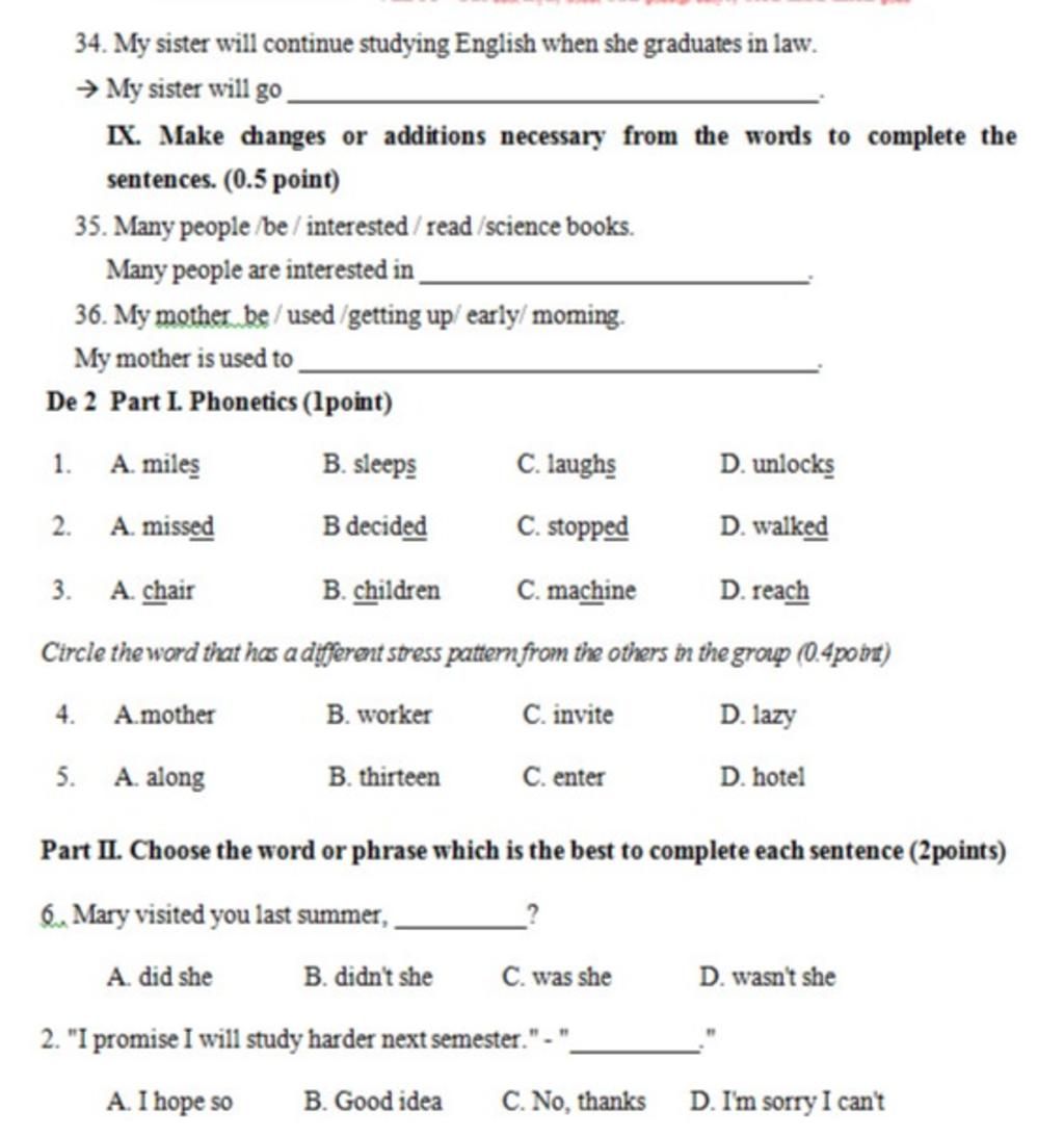 IX. Make changes or additions necessary from the words to complete the