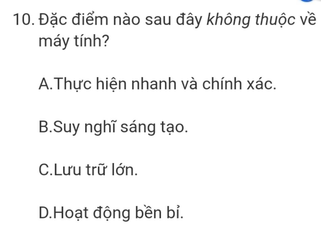 `=>` Chọn `B`. Suy nghĩ sáng tạo