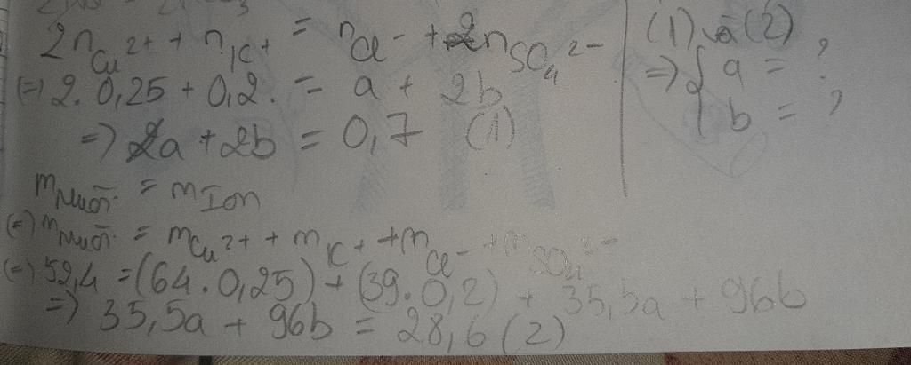 Từ $(1)$ và $(2)$ ⇒$\begin{cases} a=0,4\\b=0,15 \end{cases}$