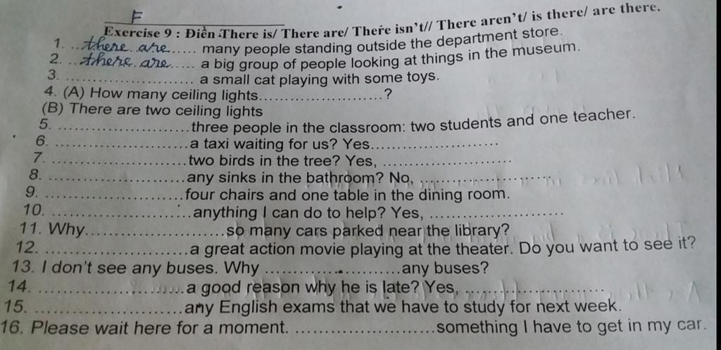 Lưu ý: chỉ chú ý danh từ được đặt sau there are/there are't là danh từ số nhiều