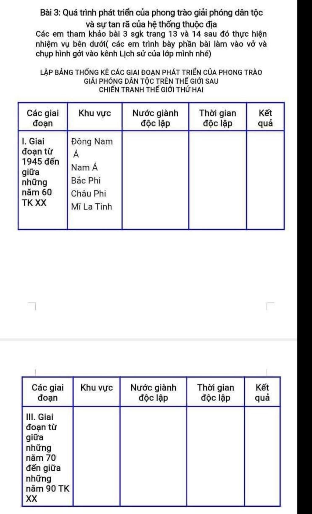 +Nước giành độc lập: Ấn Độ ; Ai Cập ; An-giê-ri