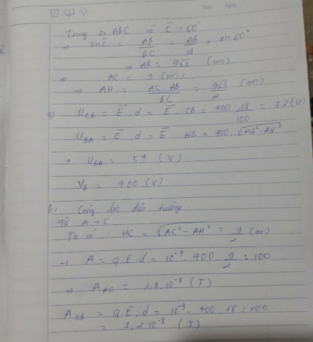 `A_{AC}=qEd_{AC}=10^{-9}.400.0,09.cos120^o=-1,8.10^{-8} \ (J)`