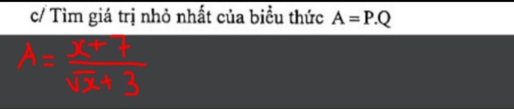 Dấu "=" xảy ra ⇔ $\sqrt{x}$ + 3 = $\frac{16}{\sqrt{x} + 3}$