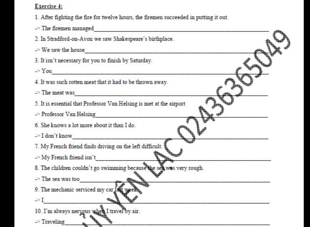 1. After fighting the fire for twelve hours, the firemen succeeded in putting it out.