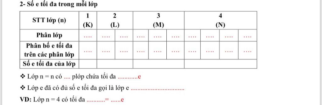 * Lớp n = n có .. plớp chứa tối đa .. .e