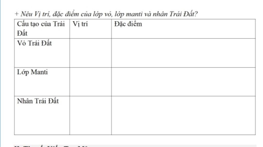 - Vị trí: Nằm giữa lớp vỏ Trái Đất và lớp Nhân