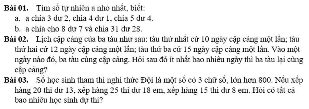 $\text{Gọi x là số ngày ít nhất mà ba tàu lại cập cảng cùng nhau. }$
