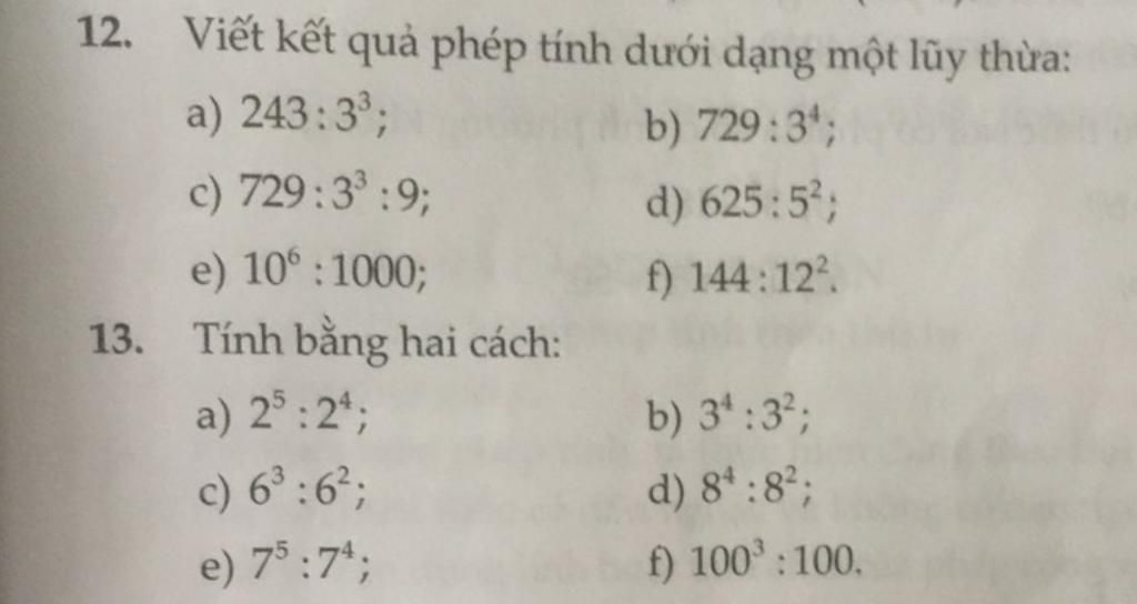 b) C1 : 3 mũ 4 : 3 mũ 2 = 3 mũ 4 - 2 = 3 mũ 2