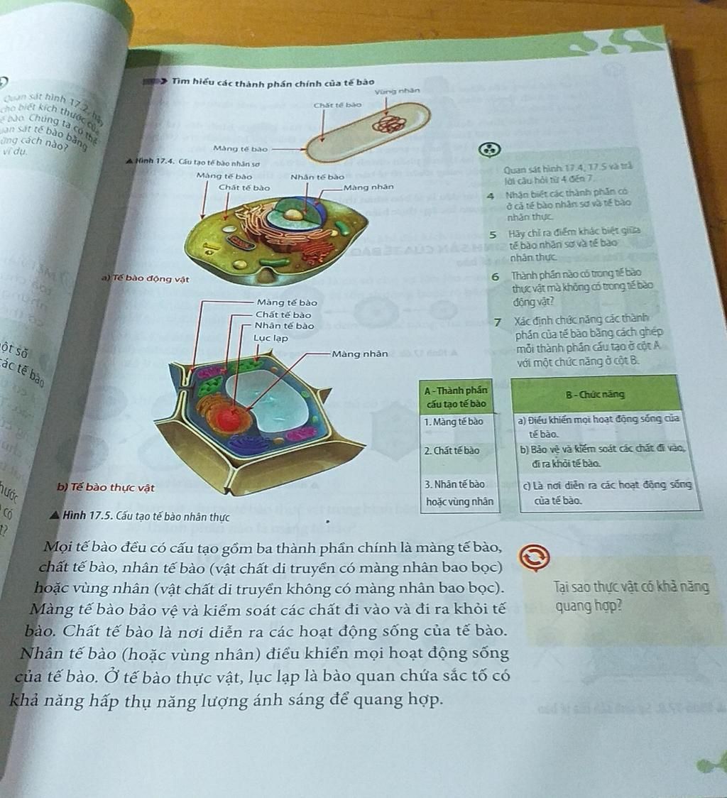 6. Lục lạp là thành phần có trong tế bào thực vật mà không có trong tế bào động vật