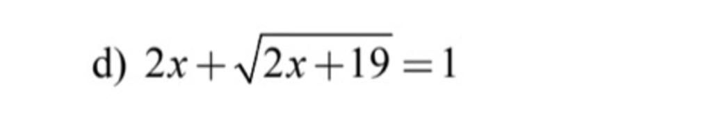 `\qquad 2x+\sqrt{2x+19}=1`