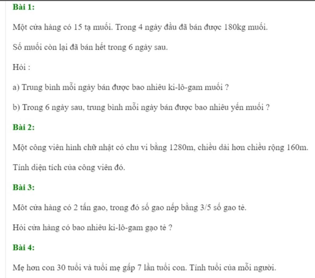 vậy, số tuổi của con là 5 (tuổi) ⇒ số tuổi của mẹ là 5 + 30 = 35 (tuổi)
