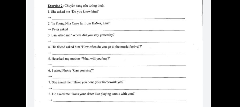 `2.` Peter asked Lan if Phong Nha Cave was far from Hanoi.