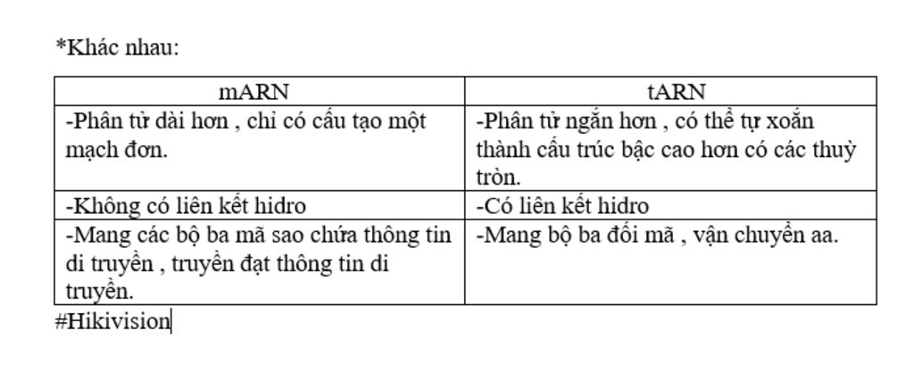 - Đều thuộc loại axitribonucleic , đại phân tử có kích thước và khối lượng lớn , cấu tạo theo nguyên tắc đa phân , gồm nhiều đơn phân , đơn phân là các nucleotit gồm 4 loại A,U,G,X.