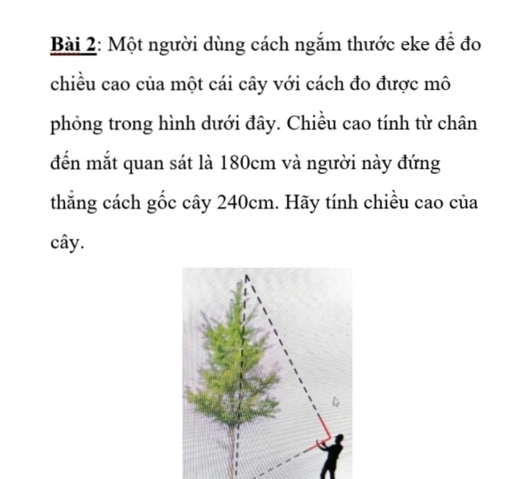 Bài 2: Một người dùng cách ngắm thước eke để đo