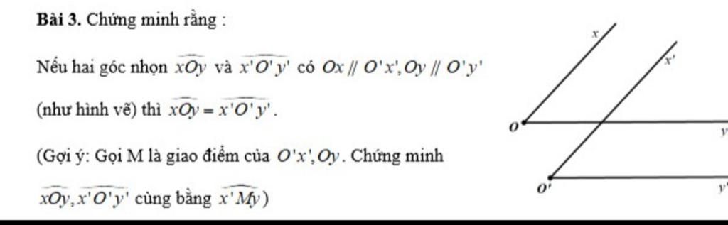 Nếu hai góc nhọn xOy và x'O'y' có Ox || O'x',Oy || O'y'
