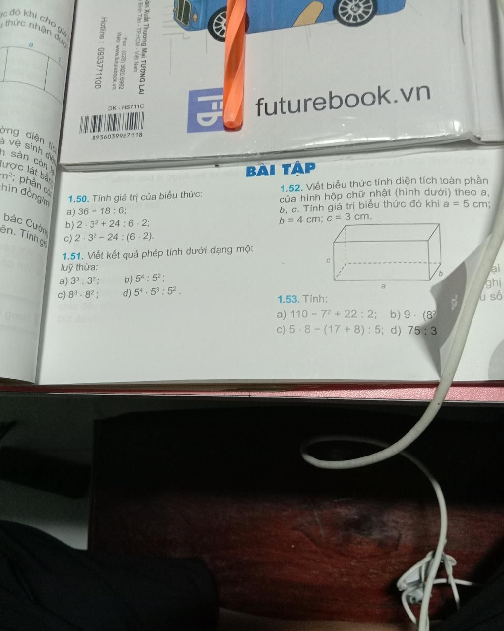 1.51 Viết kết quả phép tính dưới dạng một lũy thừa: