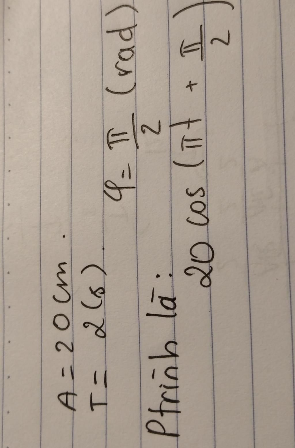 phương trình x=20Cos(πt+π/2)