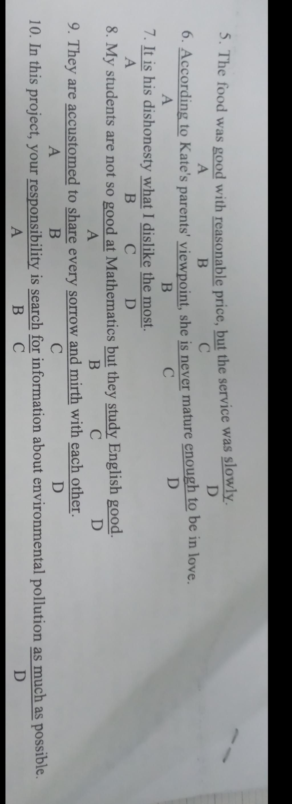 5.D ->Sau động từ tobe “was” cần một tính từ: “slowly” => “slow”