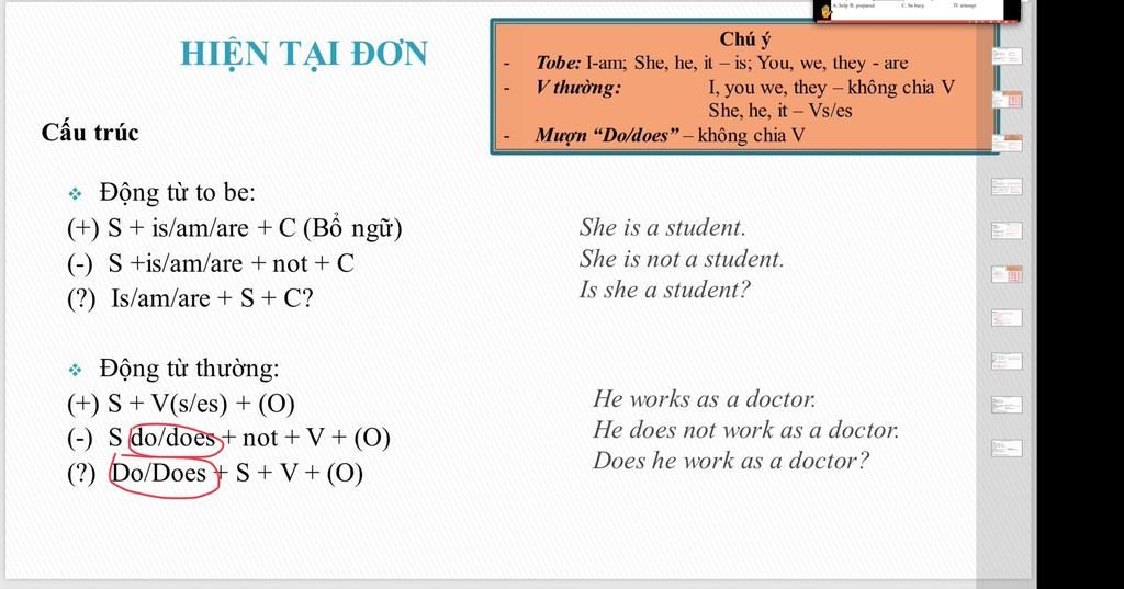 ` -> ` Chủ ngữ là : He / she / it / Tên riêng / Danh từ số ít