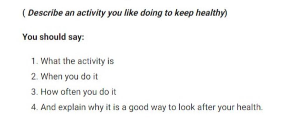 Tôi muốn nói về chuyến đi bộ buổi sáng. Mỗi ngày tôi dậy sớm và đi dạo buổi sáng. Tôi cũng đã rất thường xuyên. Tôi mặc bộ đồ thể thao và đi giày khi đi bộ. Đi bộ buổi sáng có rất nhiều lợi ích. Tôi đã từng rất béo, thực tế là một củ khoai tây đi văng, nhưng bây giờ tôi rất khỏe mạnh - tất cả là do đi bộ và tất cả là do ông tôi đã bắt tôi làm điều đó. Đi bộ buổi sáng cũng giúp cải thiện lưu thông máu. Vì vậy, đi bộ buổi sáng là hoạt động mà tôi làm để giữ gìn sức khỏe.