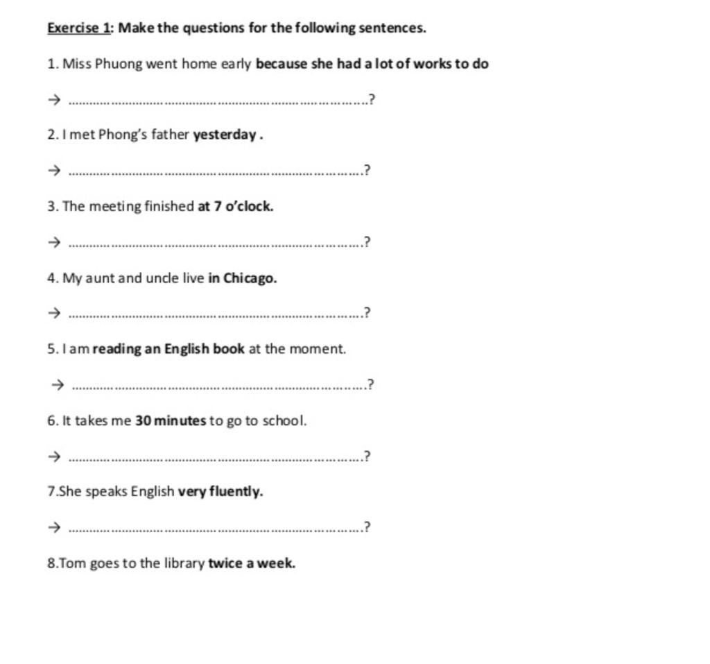 -> Đặt câu hỏi cho từ because thì dùng Why.