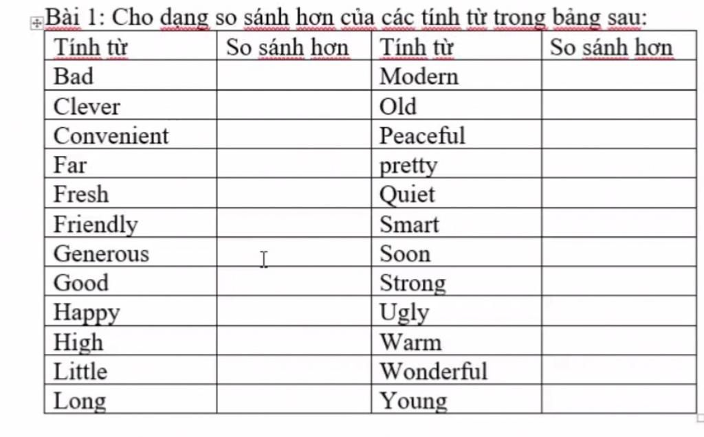 Tính từ đuôi "y": Bỏ "y", thêm "ier" vào đằng sau tính từ, VD: happy`→`happ`→`happier