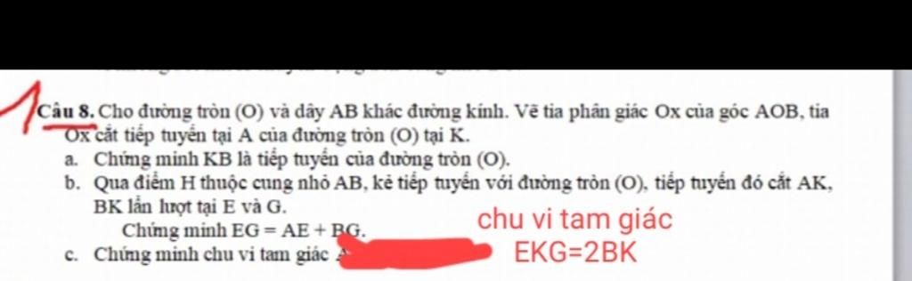 Xét $\triangle$ $OAK$ vuông tại A và $\triangle$ $OBK$ vuông tại B có: