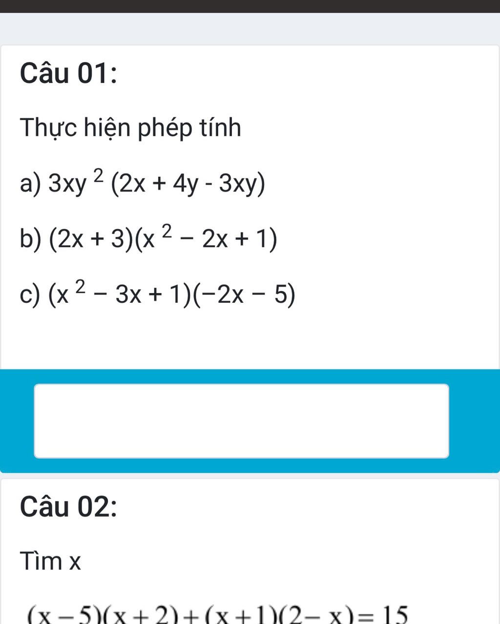`x.x + x.2 + (-5).x + (-5).2 + x.2 + x.(-x) + 1.2 + 1.(-x) = 15`