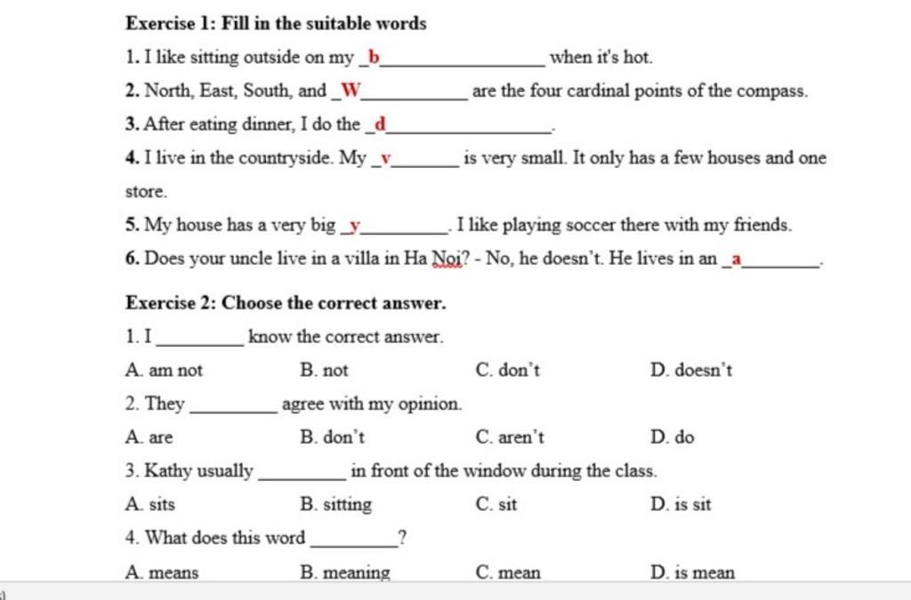 Exercise 1: Fill in the suitable words