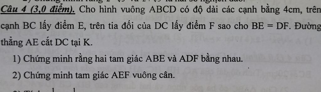 2) AE=AF( do tam giác ABE bằng tam giác ADF)