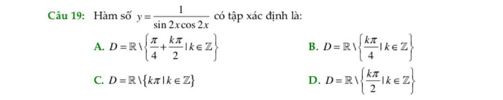 Vậy $D=R$\$\{\ \dfrac{k\pi}{4} \}$