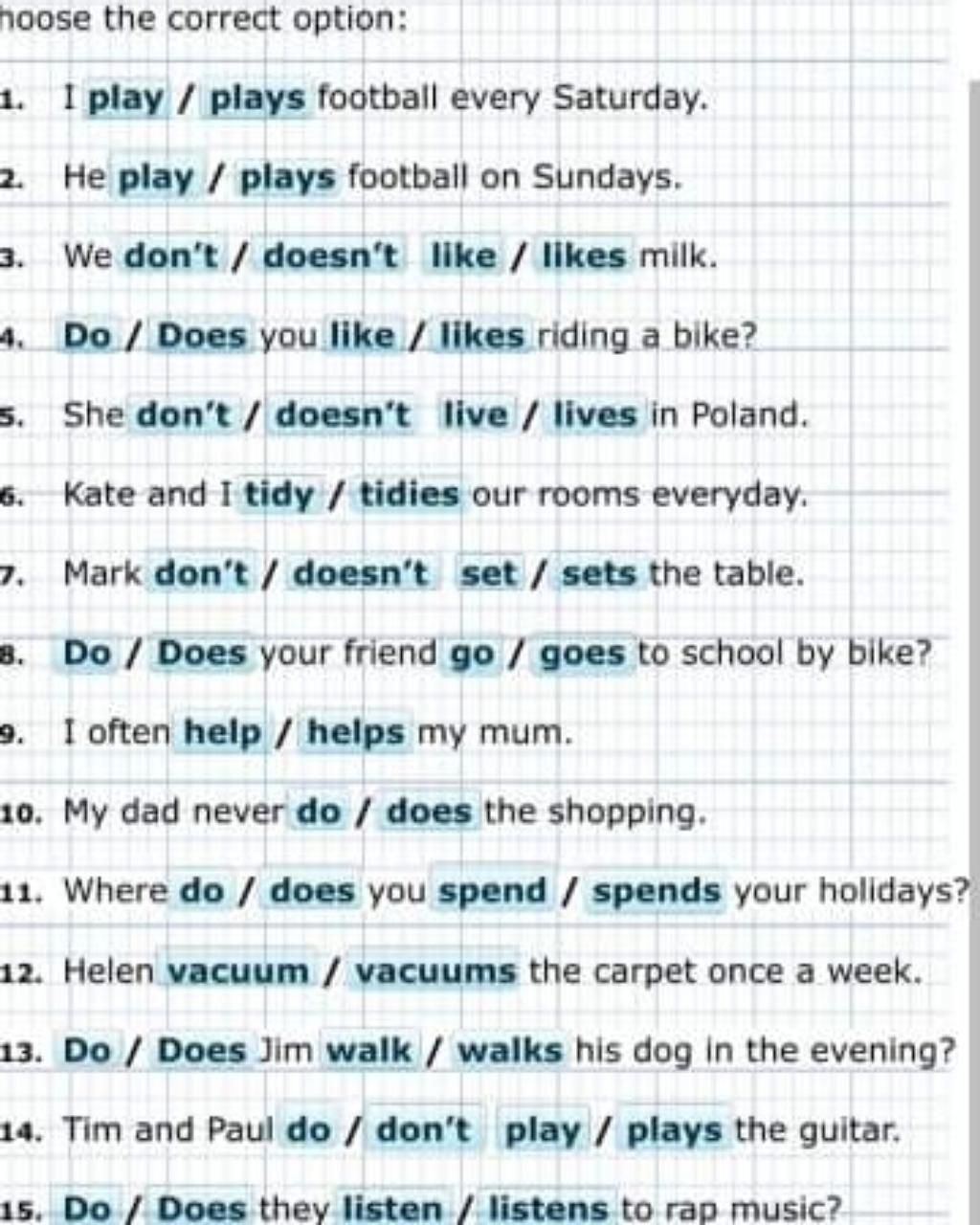 Vì chủ ngữ là Mark = He và trong câu phủ định không chia động từ