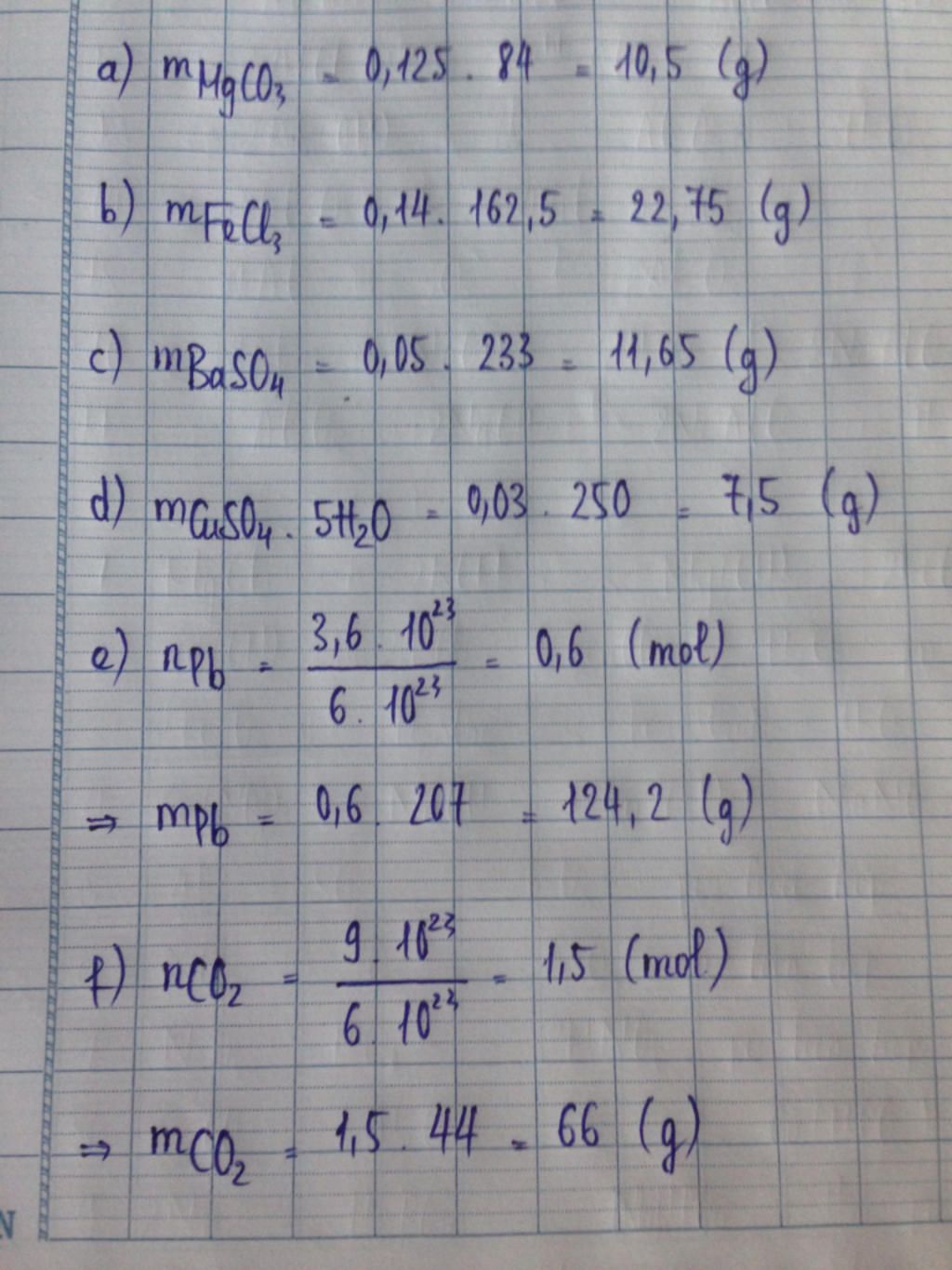 f, `n_{CO_2} = (9 . 10^23)/(6 . 10^23) = 1,5` (mol)