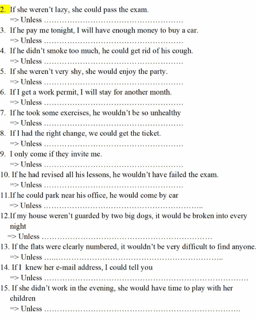 `2)` Unless she were lazy, she could pass the exam.