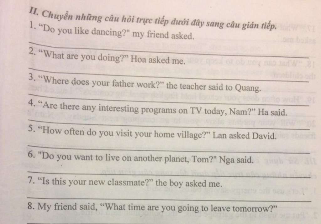 2. Hoa asked me what I was doing.