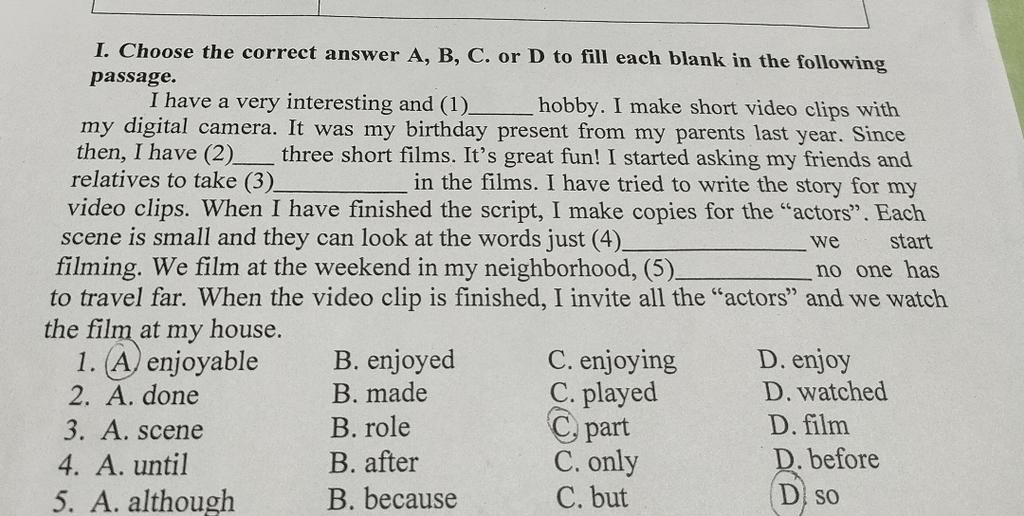 2. B (ở câu 2 đoạn văn có "make short video clip", trong câu cần chia sử dụng thì HTHT)